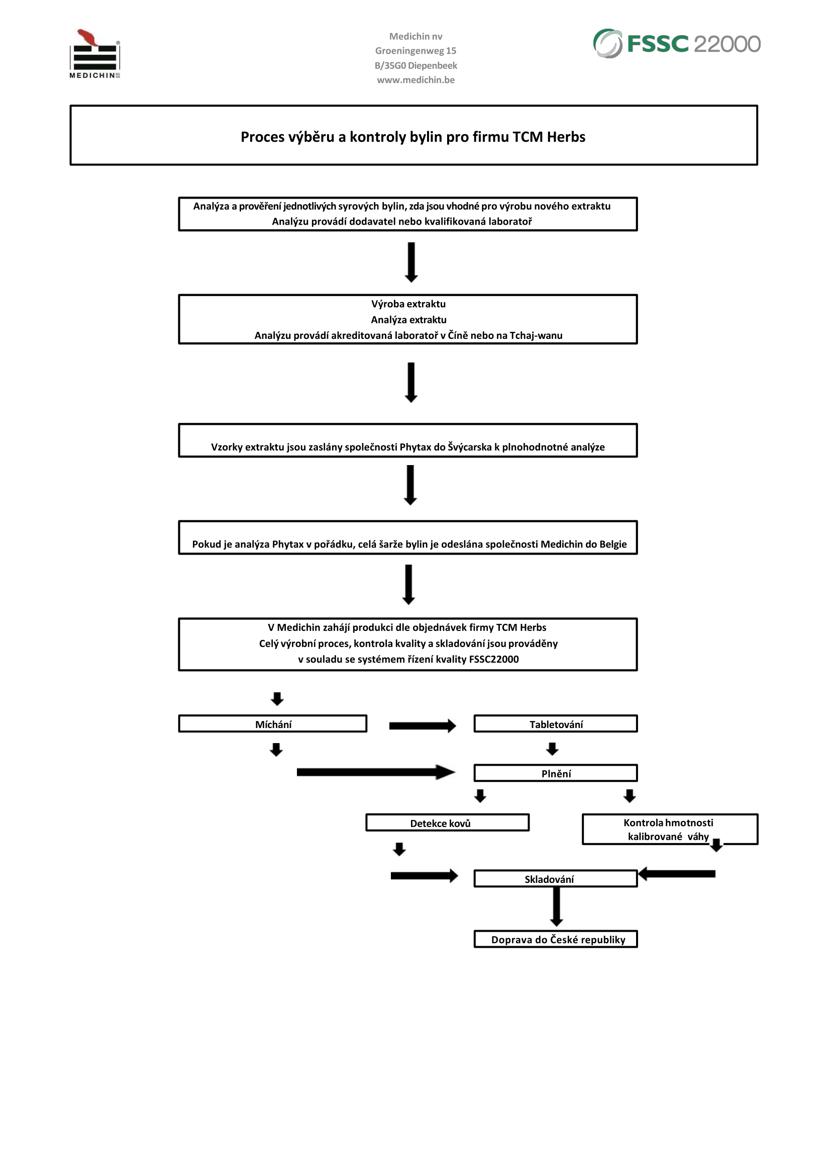 Naším jediným dodavatelem je belgická firma Medichin, která dováží veškeré byliny od firmy Min Tong z Tchaj-wanu. Tato renomovaná firma byla založena již v roce 1938 a patří proto na Tchaj-wanu i vůbec k nejstarším v této oblasti. Min Tong vařením surových bylin vytváří pasterizovaný prášek podobný kakau. Belgická firma Medichin pak tyto koncentrované bylinné prášky zpracovává do bylinných tablet a nápojů (z 5 g surových bylin se vyrábí 1 g bylinných tablet). Výrobce upozorňuje, že každá šarže bylin může mít někdy i jinou barvu, chuť či vůni, neb jsou to přírodní, a ne geneticky formované produkty, ale vždy tyto byliny mají naprosto stejný účinek.